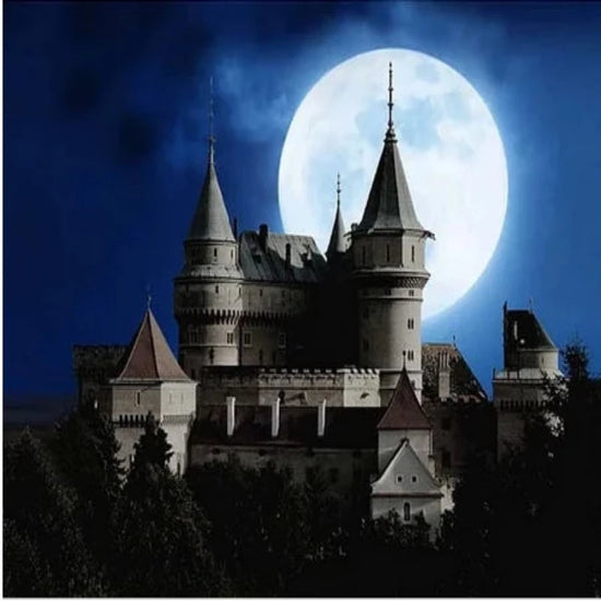 Haunted Castle Full Moon Scene Paint by Numbers