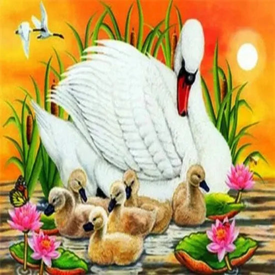 Mother And Baby Swan At Sunset Paint by Numbers